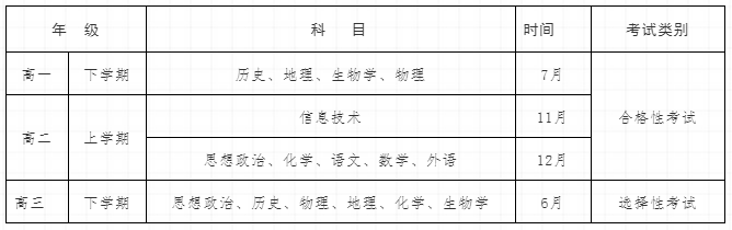《办法》明确,从2021年秋季入学的高中一年级学生开始,实施新的普通高中学业水平考试,考试分为合格性考试和选择性考试。