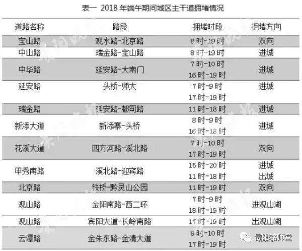 根据今年城市建设施工情况,交警提醒,延安路、花溪大道、都司路、贵惠路、中环路南段、明珠大道、白云中路等多地正处施工阶段,道路通行能力降低,交通出行影响大。途经上述路段的考生和家长请提前规划,安排好出行路径和时间,早出门避免影响考试。如考试期间,贵阳出现规模较大降雨,中环路、渔安立交、新添立交、水东路沿、五里冲路、解放路、瑞金南路、北京西路等地会出现路面积水,也请考生和家长关注天气,提前规划通行线路。城区主要干道交通预测对于端午节自驾游车主,交警提醒城区出行高峰将集中在6月6日晚高峰及至6月7日早上10时左右,返程高峰将集中在9日14时至21时。结合往年端午期间数据分析预测,贵阳市城区主干道交通流量将主要分布在宝山路、中山路、中华路、延安路、瑞金路、新添大道、花溪大道、甲秀南路、北京路、观山路、云潭路等道路。受花溪大道地铁施工影响,花溪大道通行能力有限,拥堵时间同比去年将更长,市民可以选择甲秀南路、花冠路绕行前往。图/贵阳晚报