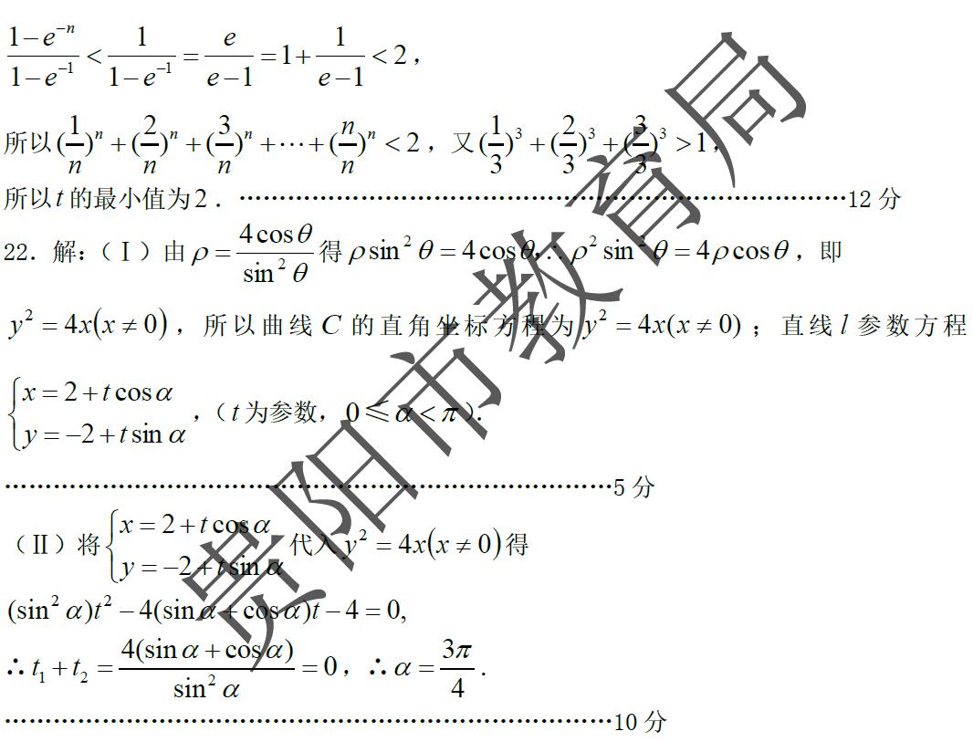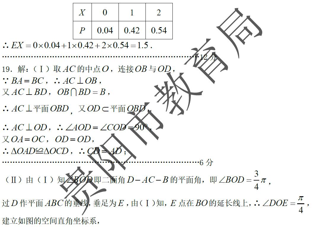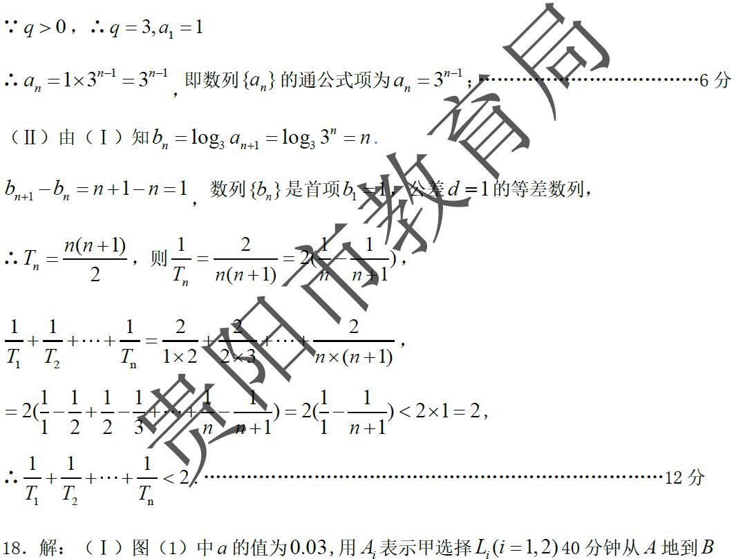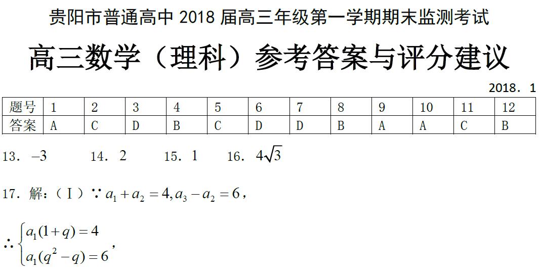 2018届高三年级第一学期期末监测考试试卷数学理科参考答案
