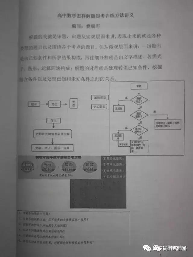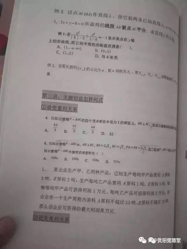 解题思考的过程就是如何针对题目快速提炼出题目的信息,然后与学过的各类方法以及课本知识要点匹配,这个过程可以归结为四个要点,两个核心:一是题目中关键词提取和分解定位特别是一些文字材料,二是题目中各类复杂条件的转化方法。
