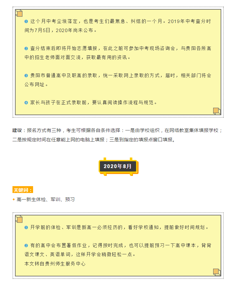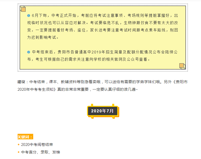 2020中考大事记!贵阳中考学子必知的时间节点