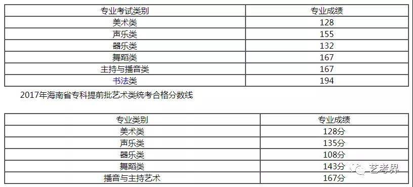 (二)2018年海南省艺术类专科批文化课录取控制线为196分