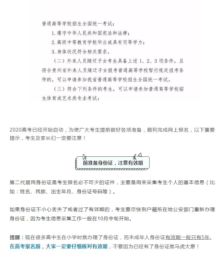 贵州省2020年高考报名时间公布: 11月10日-20日(附:2020年高考报名重要提示 | 三大专项计划常见问题解答)